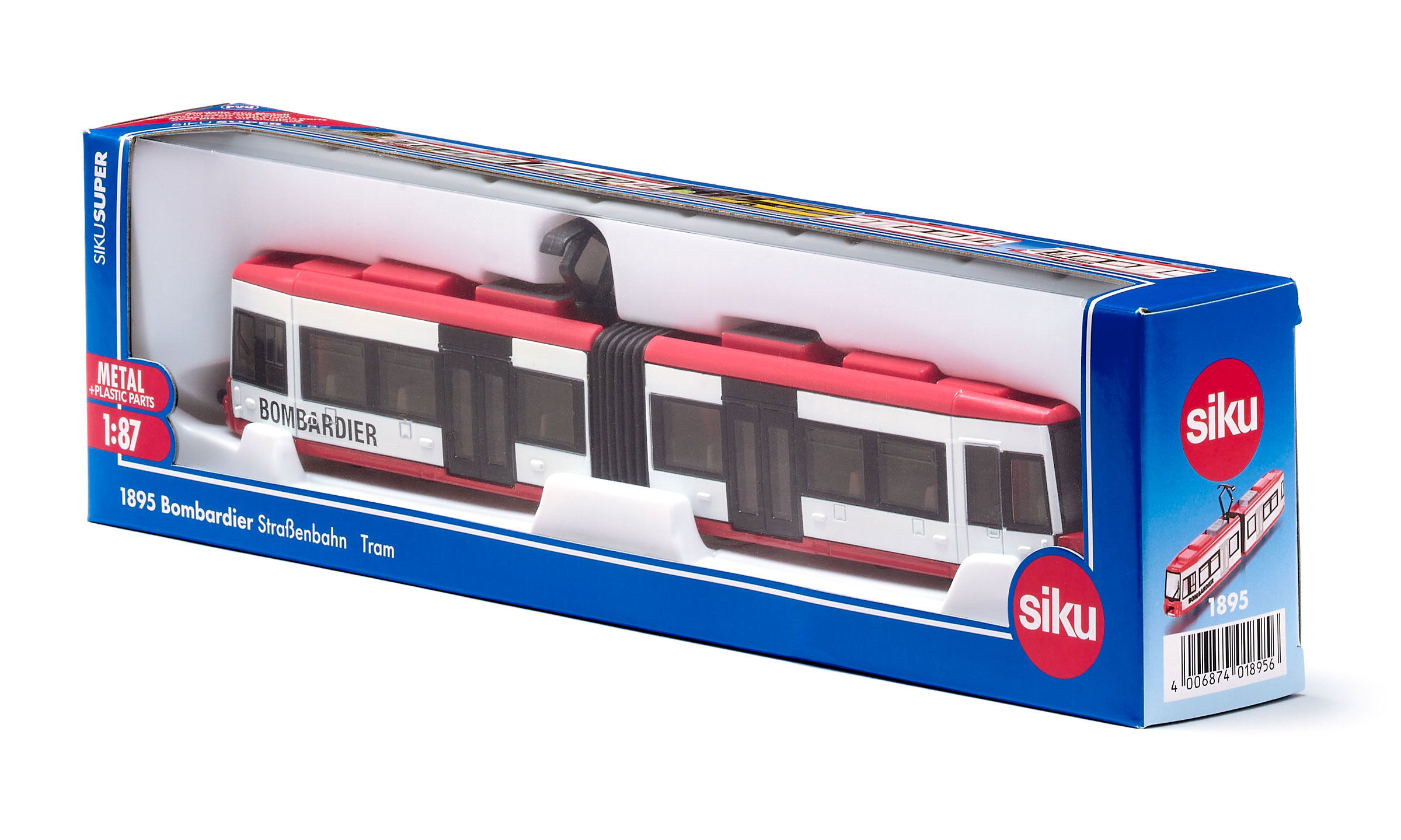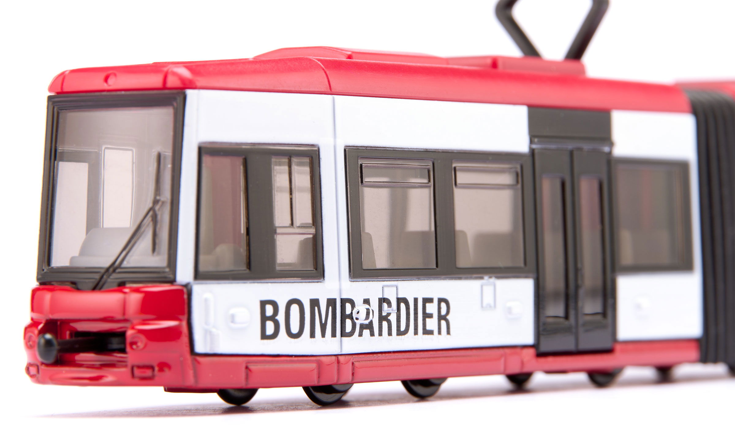 En complément de l'assortiment des véhicules des exploitants communaux de transports en commun, le tram au design du constructeur mondial Bombardier est un modèle exceptionnel. Le tram à 2 éléments muni d'un soufflet au milieu roule sur des essieux fidèles à l'original et est équipé d'attelages à l'avant et à l'arrière permettant d'atteler plusieurs trams miniatures.
