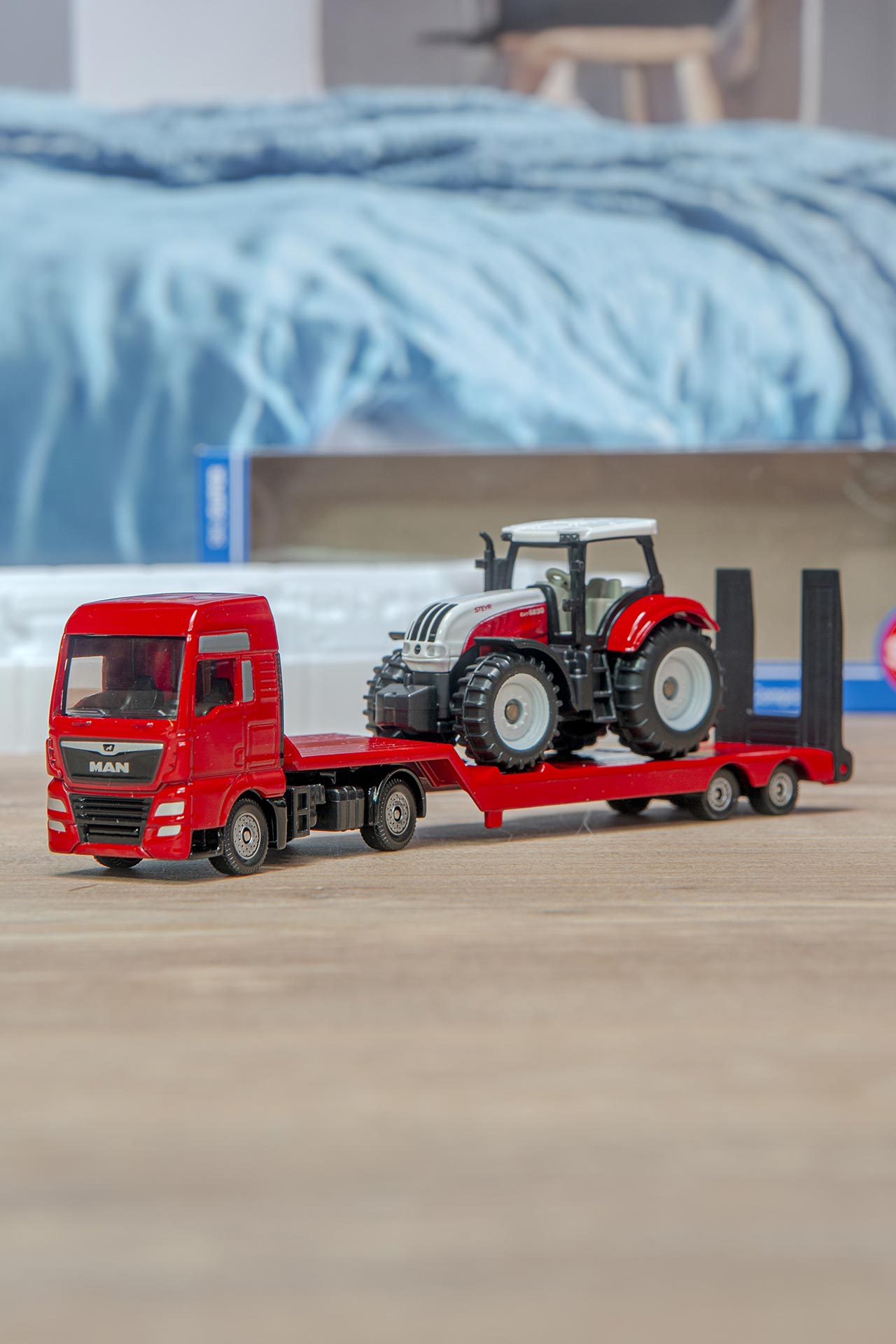 Große LKW und kraftvolle Traktoren üben auf Kinder eine besondere Anziehungskraft aus. Sie stehen für Transport, Landwirtschaft und echte Arbeitsmaschinen, die täglich im Einsatz sind. Ein MAN LKW, der einen Steyr Traktor sicher zum Einsatzort bringt, verbindet Logistik und Farmer Alltag zu einem spannenden Gesamtbild.