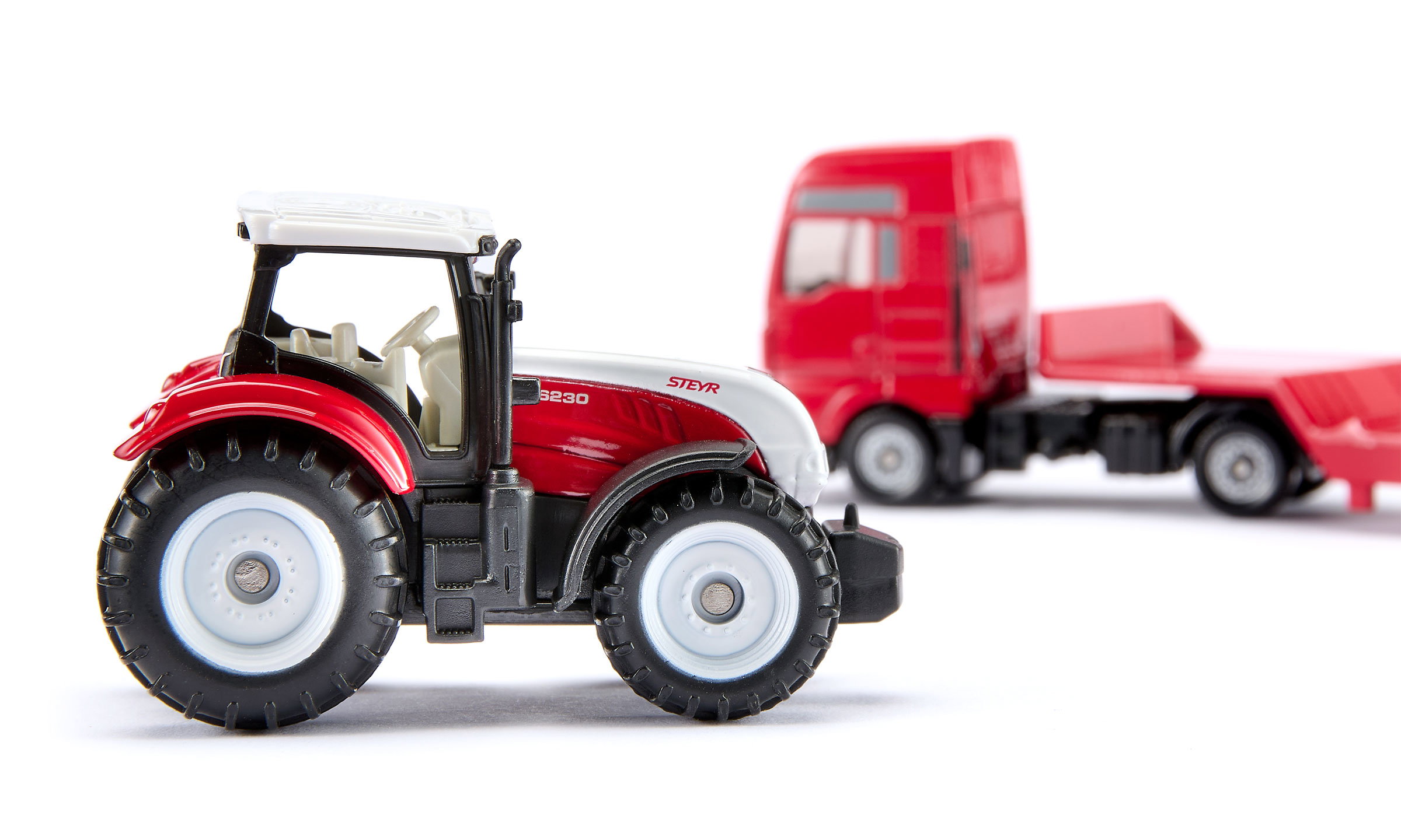 - Lieferumfang: MAN LKW mit Tieflader, Steyr Traktor