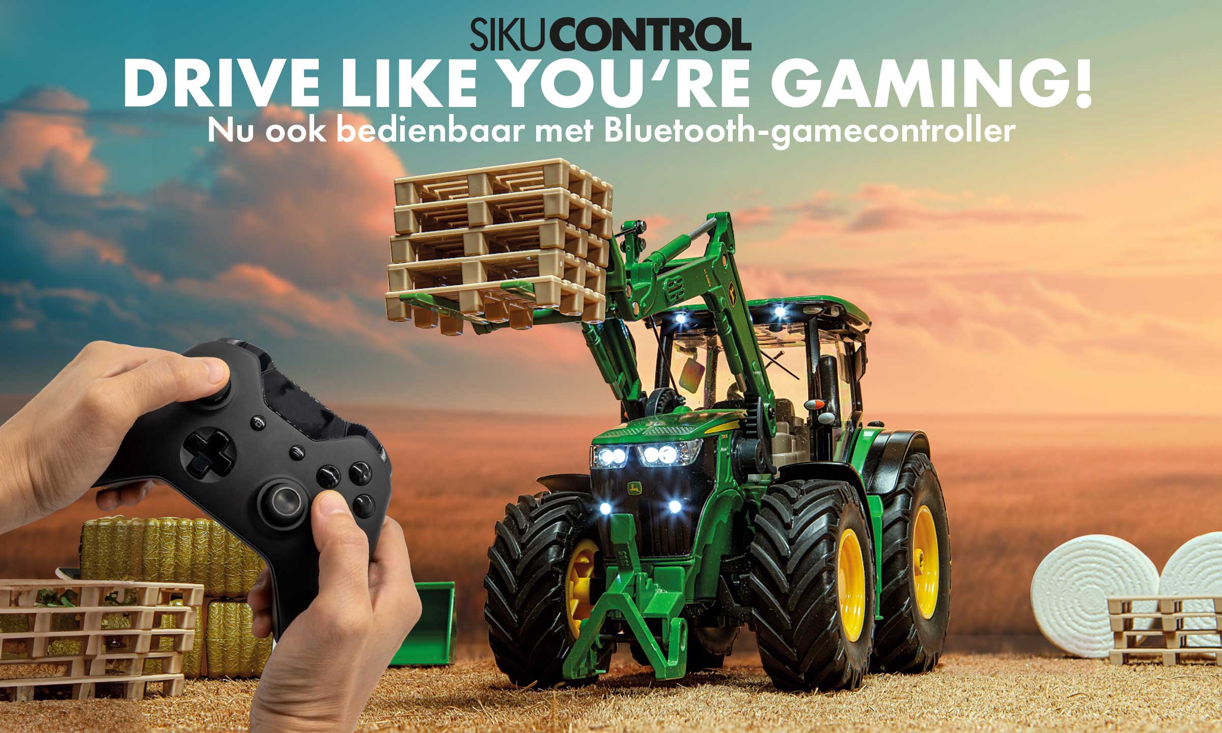 Gebruik (jouw) gamecontroller om de Bluetooth-voertuigen van de SIKUCONTROL-serie te besturen. Je kunt elke Bluetooth-compatibele controller gebruiken, zolang je deze via Bluetooth met je mobiele telefoon kunt koppelen. Verbind dus de controller met je mobiele telefoon, start de SIKUCONTROL-app en ga op weg.